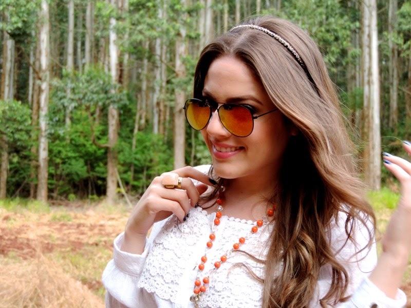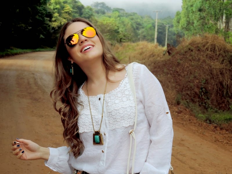Hoje já é quinta e para começar a sentir o cheirinho do final de semana, que tal um look bem relax que o Prova e Aprova da Loja Algodão Doce trouxe para vocês? Uma calça floral linda, que é uma peça atemporal, afinal suas cores combinam tanto com o inverno, por ter este fundo mais escuro, como também para o dias mais quantes, pela alegria dos tons das flores. A camisa branca é bem estilo Hippie Chic, super cool com estes botõezinhos apenas até a metade, uma renda super discreta e sem gola. O charme da produção ficou por conta deste colar estilo cordão que faz par com os brincos e a outra opção foi o colar de crucifixo que apesar das pessoas terem receio em usar, está casa vez mais entre os queridinhos das fashionistas! A bolsa de franjas e a tiara arremataram o visual! Vamos conferir tudo?