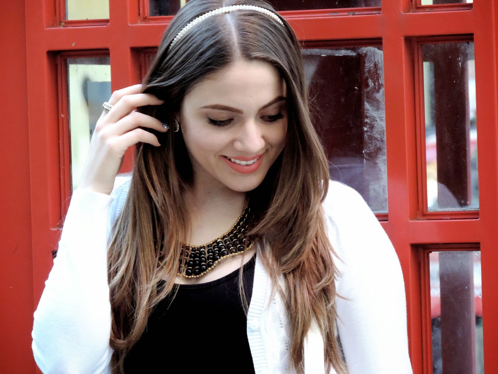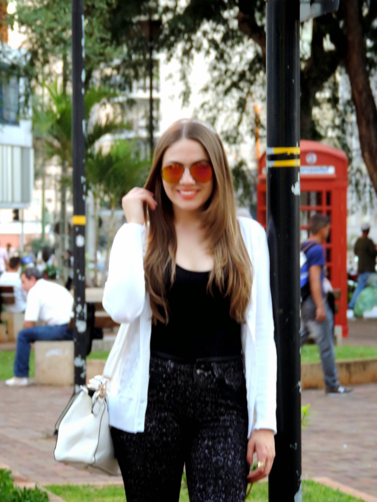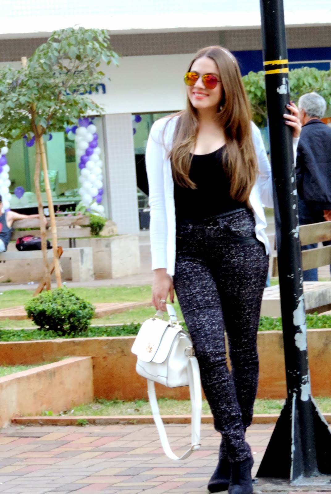Hoje teremos um look do dia super versátil, usei em um dos últimos finais de semana para ir para a faculdade, foi mais uma sexta puxada de aula na minha especialização (logo serei uma blogueira fisioterapeuta especialista em fisiologia rsrs). Meus finais de semana são super corridos por causa das aulas, chego em londrina e não paro um minuto! Por isso sempre preciso ter em mente looks práticos, confortáveis e ao mesmo tempo "arrumadinhos". Neste dia, tive uma visitinha pra lá de especial de uma das minhas best, a Nathaly, não a via desde a nossa formatura, então aproveitamos o final de semana para matar a saudade, fofocarmos, fazermos compras, enfim! Este look foi perfeito para tudo isso, uma calça mesclada que eu amo, bem diferente, com detalhes em couro fake, body preto básico, cardigã branco e para complementar o look dando um charme especial, uma tiara branca, um colar gola (não paro mais de usar estes modelos rs), bolsa branca para equilibrar a combinação e botinha de cano baixo mega confortável! Amei a composição e me senti confortável e bem vestida para todos os compromissos do dia. Em meio a tudo isso, minhas amigas me ajudaram com algumas fotos para mostrar para vocês como ficou, vem ver?!