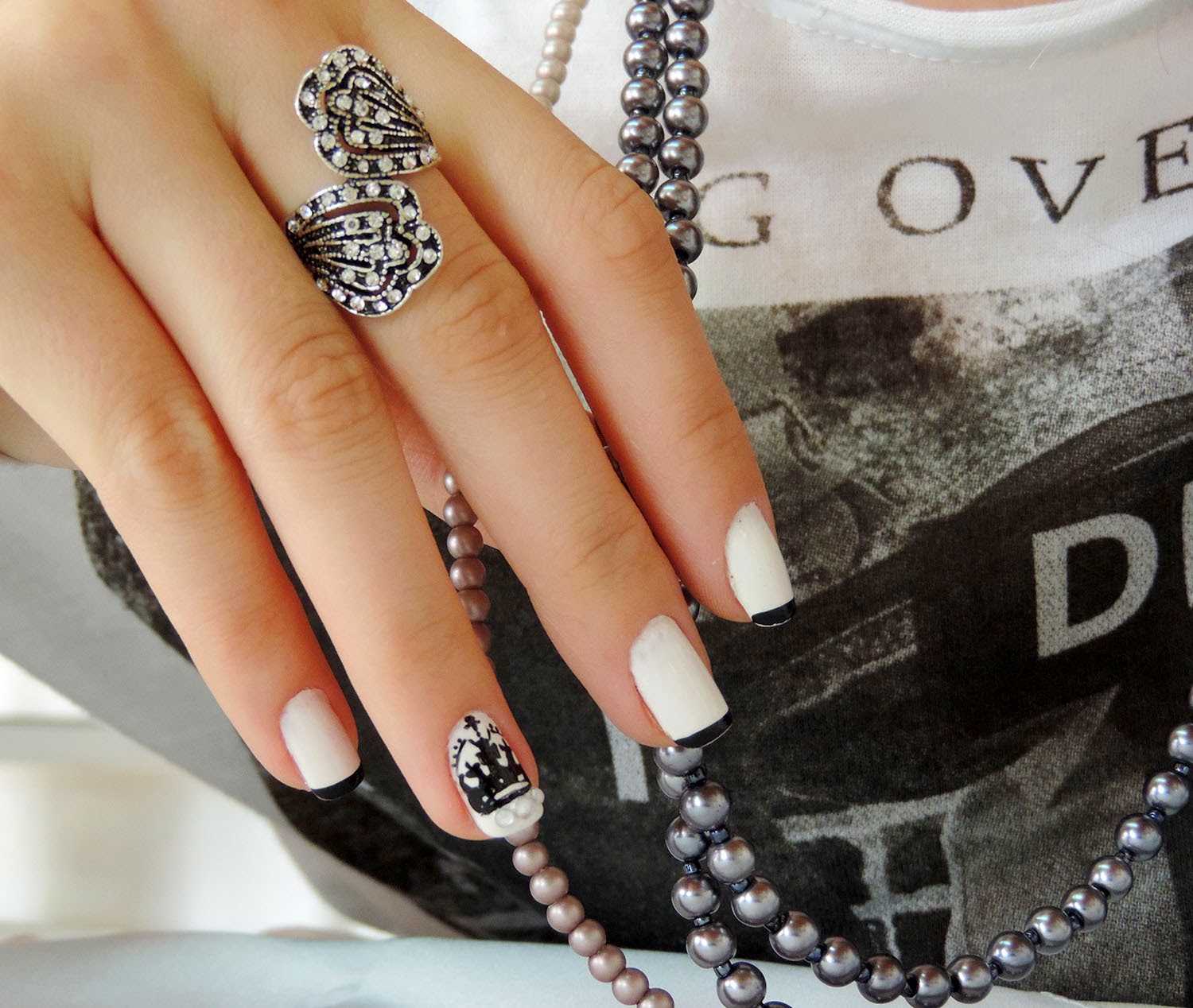 Hoje, para trazer à vocês um pouco desta super trend, resolvi fazer algo que há tempos estava querendo fazer, em homenagem ao meu tão amado blog e minhas leitoras lindas, que é a unha P&B com decoração de coroa ♡