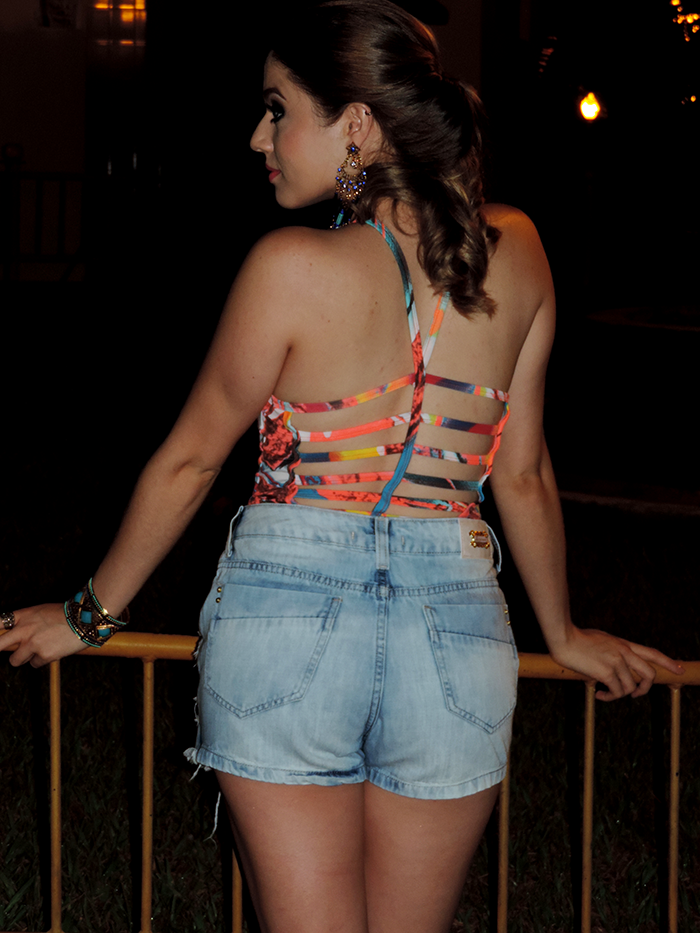 No quarto e último dia, foi a vez do jeans! Afinal, tem peça mais versátil e que todo mundo adora? Usei um shorts saia, que é uma combinação perfeita entre conforto e charme, combinei com uma peça mais ousada, o body, todo aberto nas costas, para conseguir um look, atual e despojado, sem perder a elegância!