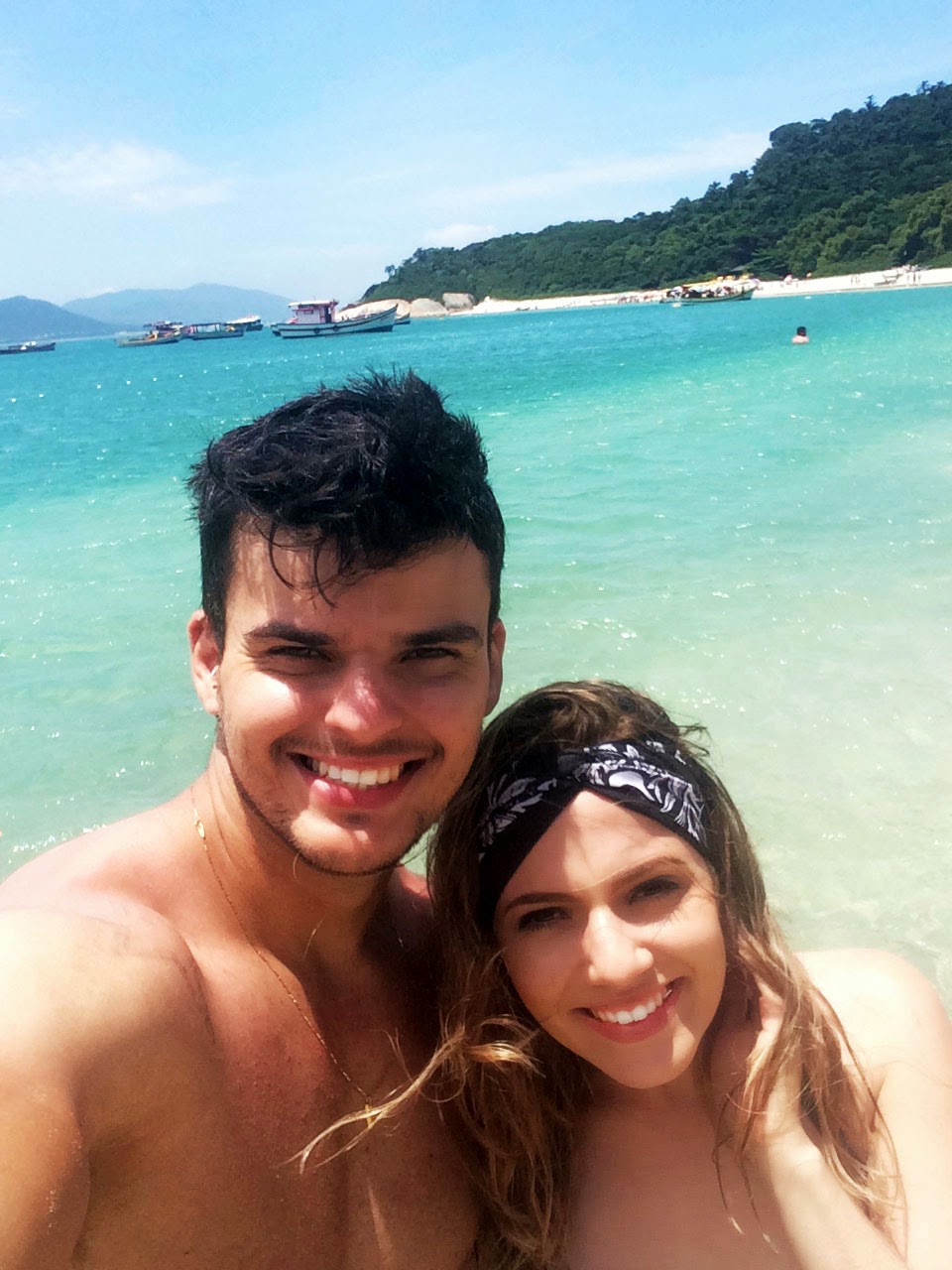 Meu namorado quando viu fora do corpo achou super estranho, o que é normal hahaha mas quando viu o resultado no corpo gostou e aprovou! Usei um look todo P&B, o que deixa o visual bem elegante na praia, com ar de sofisticação, o que essa ilha maravilhosa pedia e merecia, né? O turbante foi meu aliado, afinal estava um sol muuuuuuito forte e ventando também, fora que pra chegar até a ilha levamos banhos de onda no bote, o que fez com que o cabelo já chegasse desarrumado hahaha