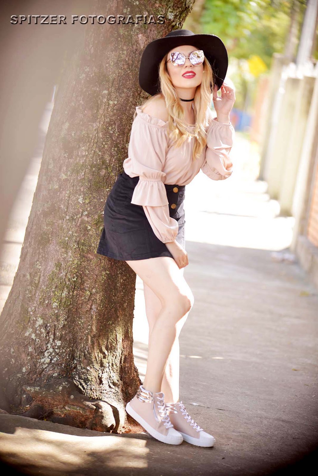 Chapéu, que acessório mais lindo, mais cheio de personalidade! Não me canso de dizer o quanto sinto por não ser algo comum neste nosso Brasil ensolarado! Mas que bom que, pelo menos nas fotos, eu me sinto tão bem em usar esta lindeza que deixa qualquer produção para lá de estilosa! Óculos espelhado com lentes rosadas, para deixar a produção super cool! Ahh, no pescoço a nossa queridinha chocker que é o estilo de colar mais lindo para se usar com decote ombro a ombro, sem contar que é o que há de mais moderno para os acessórios e está ganhando cada vez mais espaço no mundo da moda!