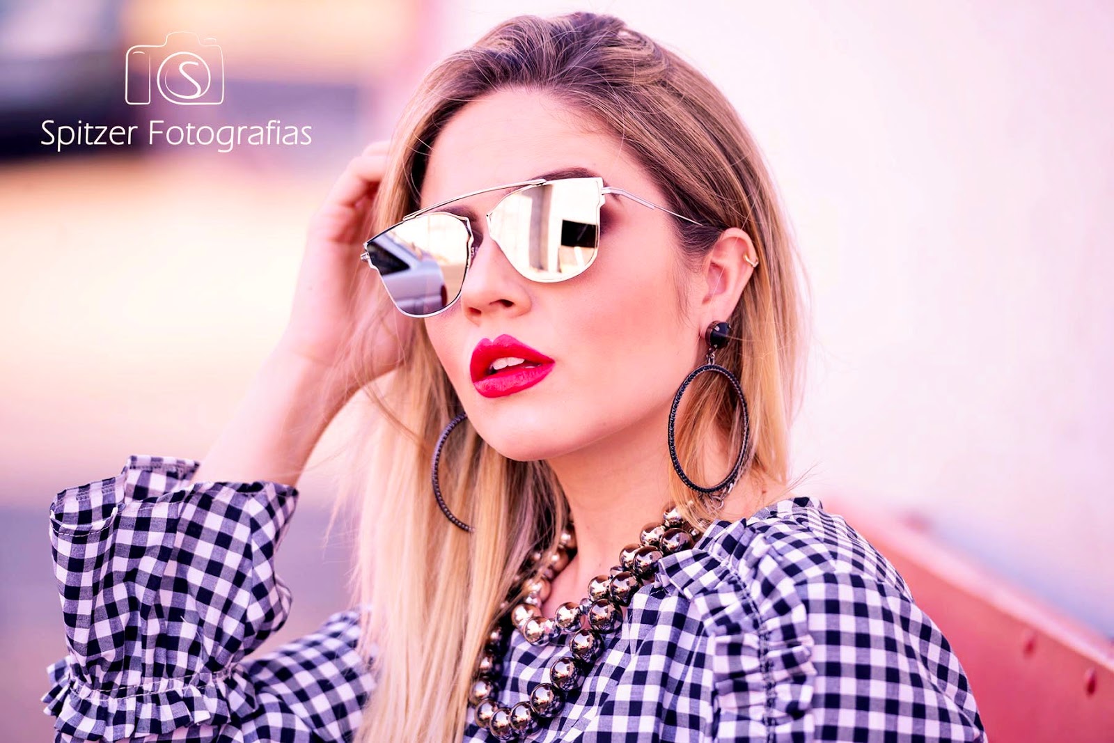 Vamos começar pelo meu queridinho, afinal, eu estou viciada em tudo que tem essa estampa vichy, que é esse xadrez que está suuuuuuper em alta, falei sobre essa trend AQUI, se você não viu ainda, confere lá. O que eu mais amei nessa blusa é que, além da estampa trend, ela vem na modelagem mais atual que há, com babadinhos e mangas bufantes. Para lacrar o look, saia de couro com zíper fronal, outra tendência que vale muito à pena investir, pois, serve pra vida!