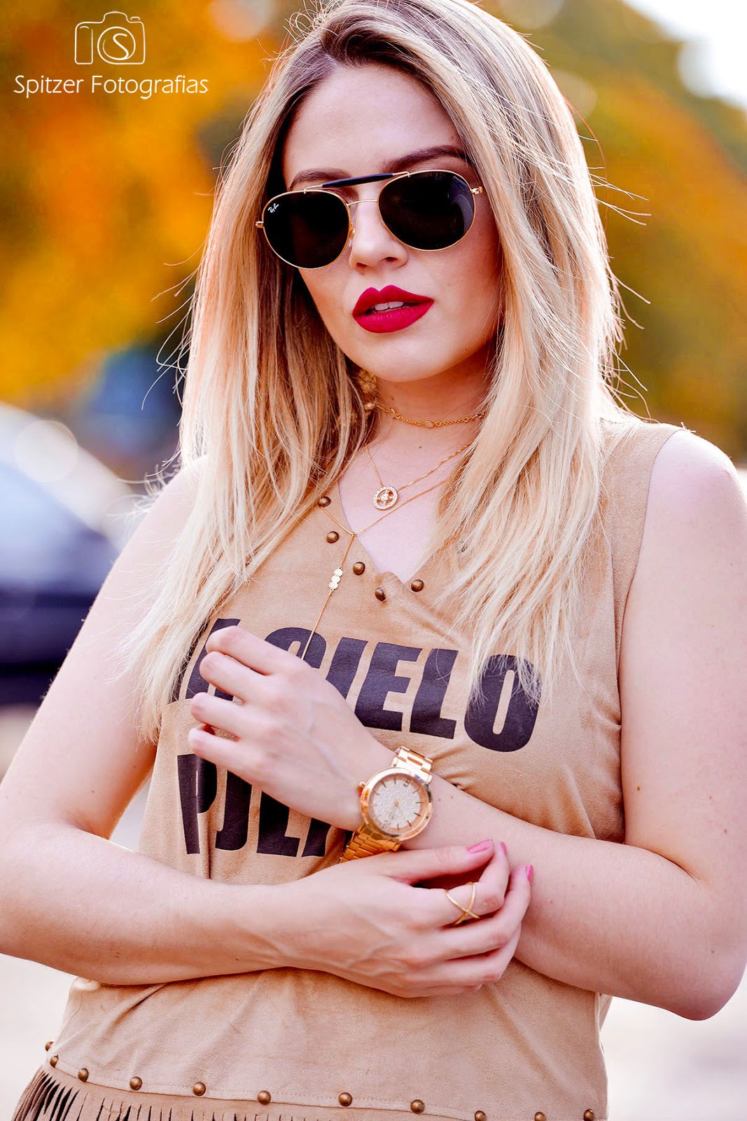 Óculos e relógio combinando com o look, é muito amor!