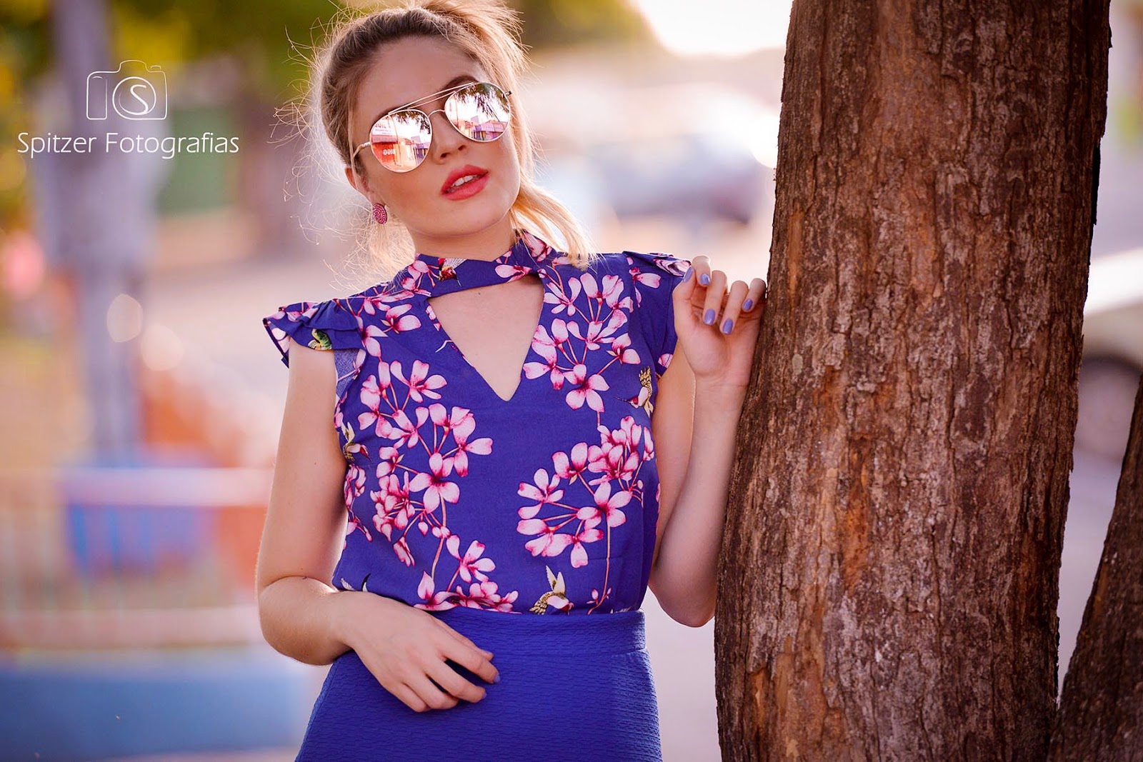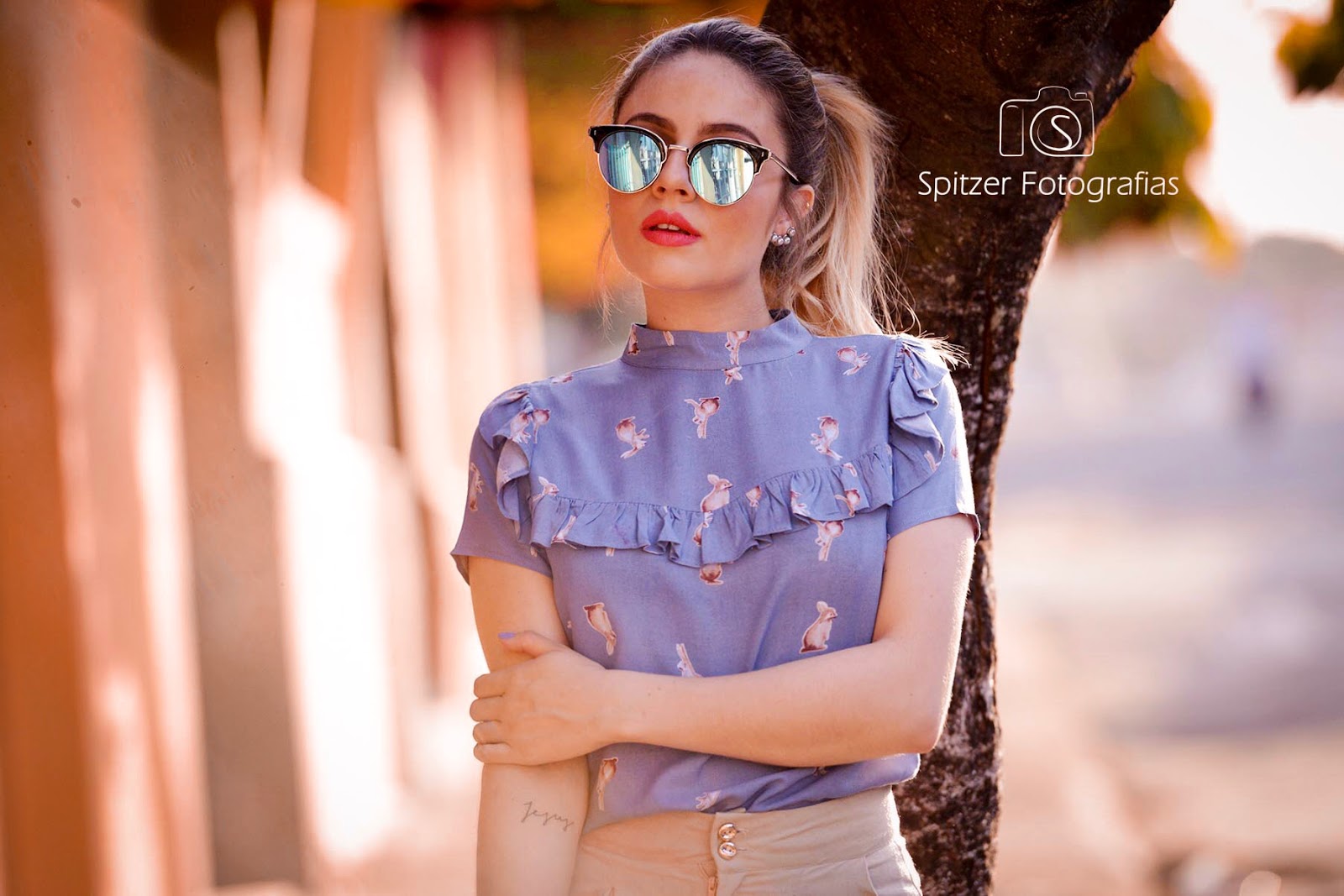 E para quem ama os looks mais arrumadinhos, que tal babados e flores num tom lindo de azul? Esse modelo de blusa com a choker, que já faz parte da blusa, está um charme que só, sem contar essa manguinha toda delicada. Nos pés uma sandália nude para dar aquela alongada que a gente ama.